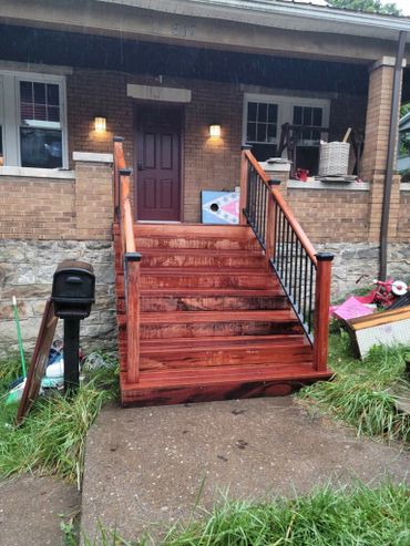 This beautiful and long-lasting decking is the option we recommend most. Our Never-Stain decking and railing is real hardwood that you never have to paint, stain, or seal. You can reface an existing wood or concrete porch or patio. Or you can build a new custom deck that will last 50-75+ years. Not only is this the last deck you’ll ever need to have built, but it is also: